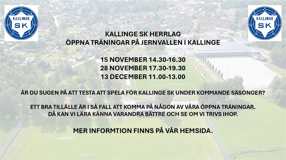 Kallinge SK:s herrlag kommer att ha tre öppna träningar på Jernvallen i Kallinge.